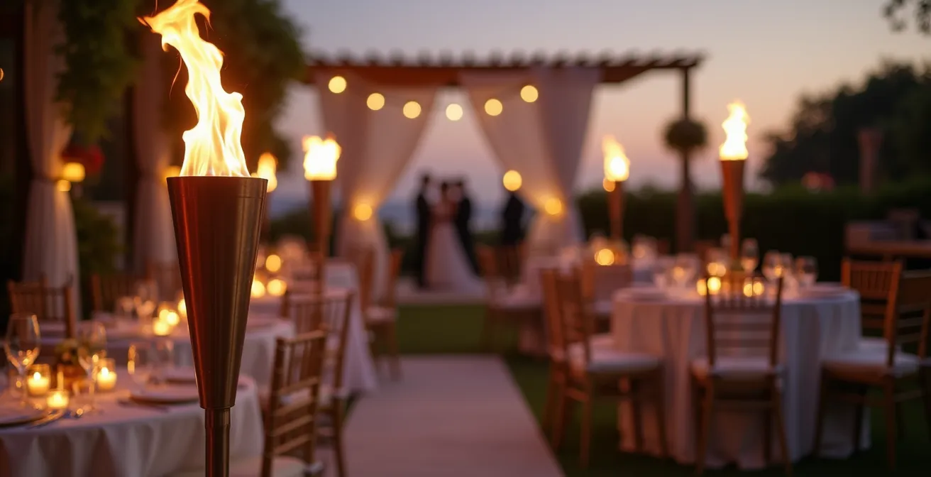 The romantic flicker of an open flame is dangerously deceptive. In a wedding environment, it’s not just a light source; it’s a calculated risk. The primary danger isn’t the torch tipping over—it’s its proximity to flammable materials, namely, the guests themselves. Fire safety experts warn that small open flames are major sources of clothing ignition, with dresses and flowing garments being particularly vulnerable. A guest turning quickly, a gust of wind blowing a chiffon sleeve, or someone stepping back without looking can lead to a catastrophic incident in seconds.