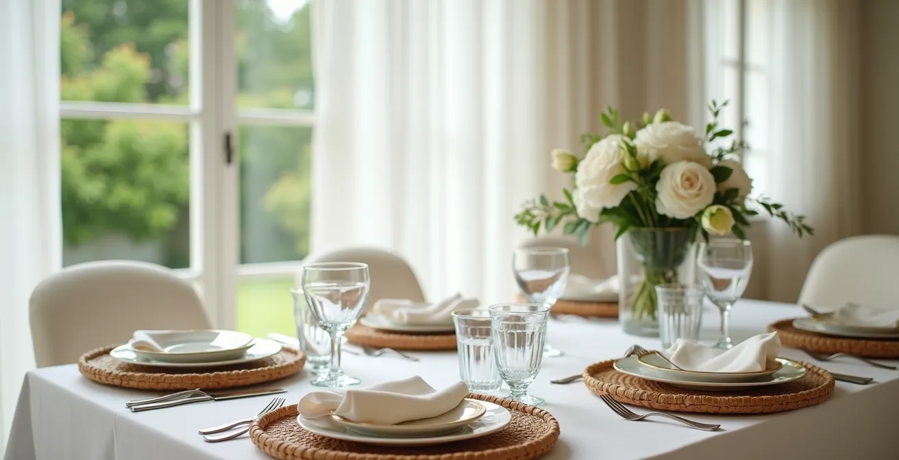 - Formal Rattan Styling: The key is not to hide the rattan’s texture but to create a “high-low tension” with polished elements like fine china and metallic flatware.