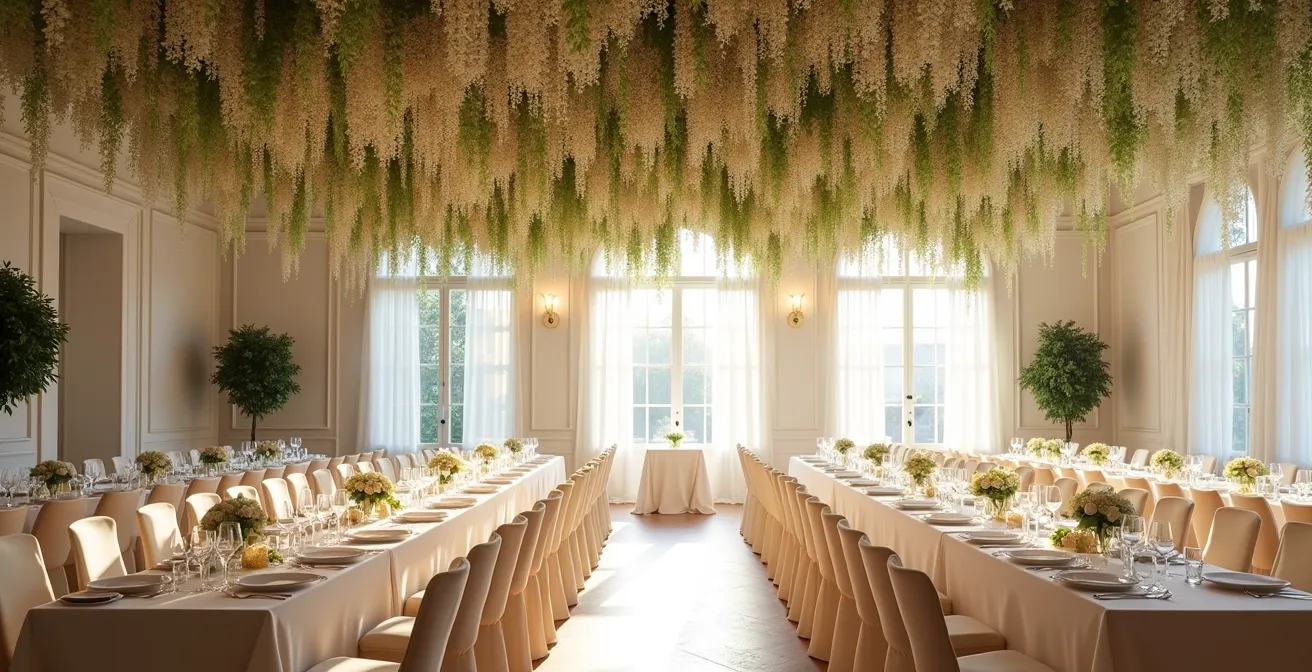 The true magic of a wisteria ceiling lies in its apparent effortlessness, as if it grew there by enchantment. This illusion is shattered the moment a guest looks up and sees a grid, a hook, or a cable tie. The secret to maintaining the fantasy is achieving total visual coverage through strategic density and layering. This isn’t about cramming as many flowers as possible into a space; it’s a calculated process of building up texture and form to create a seamless, organic canopy.