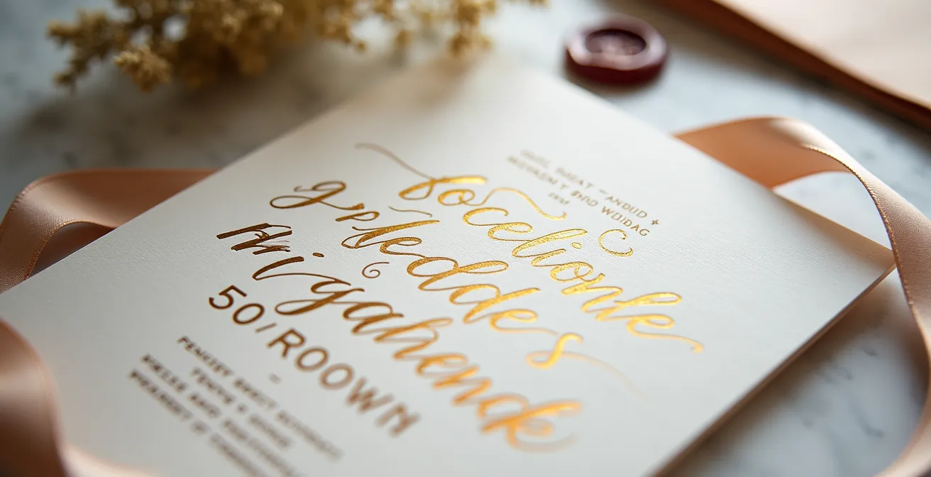 Recommendation: To ensure elegance and readability, limit foil to less than 25% of the invitation’s surface, using it to highlight key information like names and the date, rather than for large blocks of text.